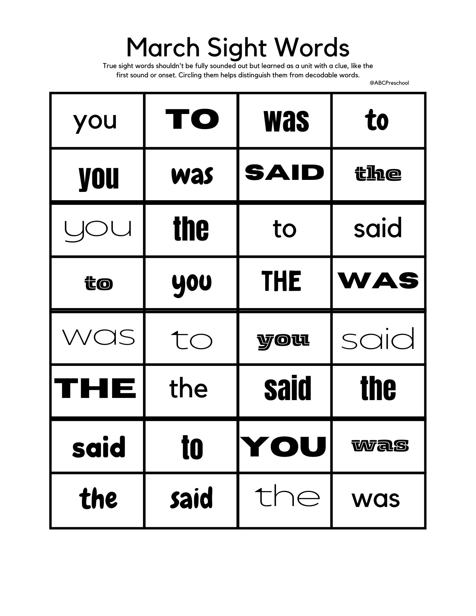 Keep this printable below and slide it into a plastic sleeve. We’ll be using it each week this month!